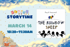 This Saturday, we will be reading The Rainbow Sheep by David Hayward. Join us to meet a special sheep that refuses to compromise on being himself! ... 14 Mar 2026 Storytime: The Rainbow Sheep 10:30